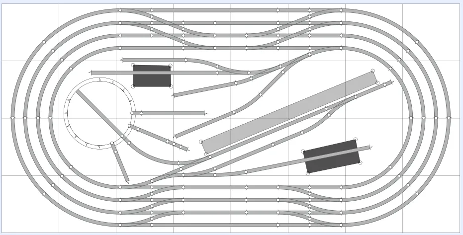 This is a 4 track continuous loop layout in OO gauge using Hornby track.